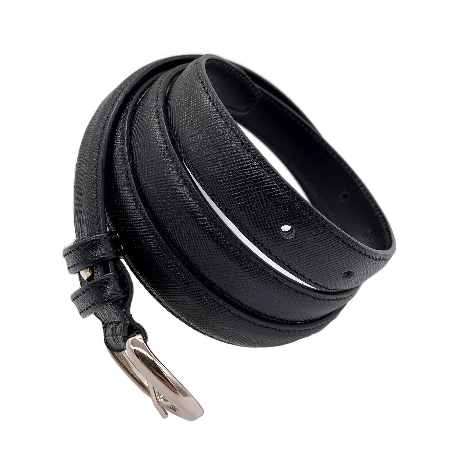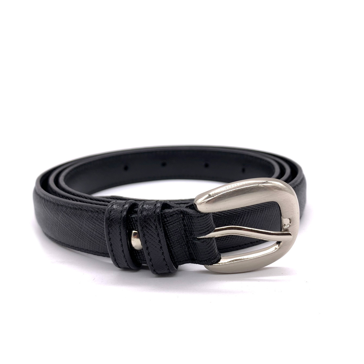 Featuring a polished buckle, this subtly textured leather belt is a chic way to complete any ensemble.