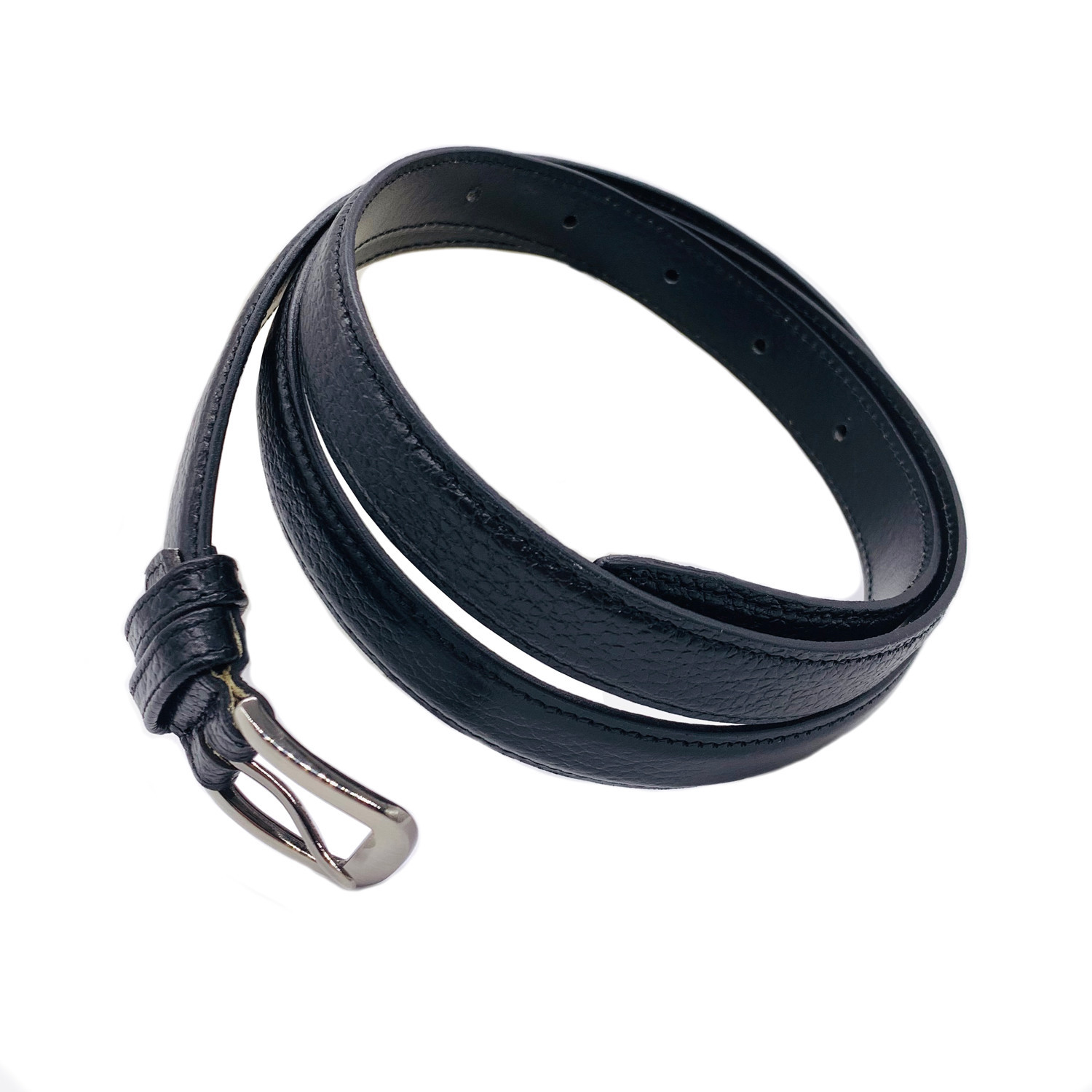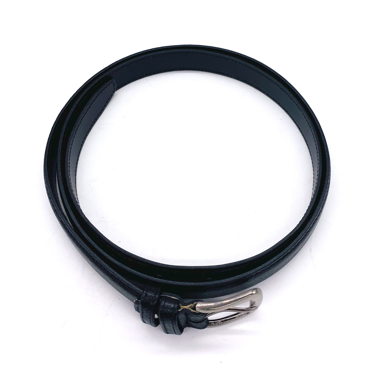 Featuring a polished buckle, this subtly textured leather belt is a chic way to complete any ensemble.