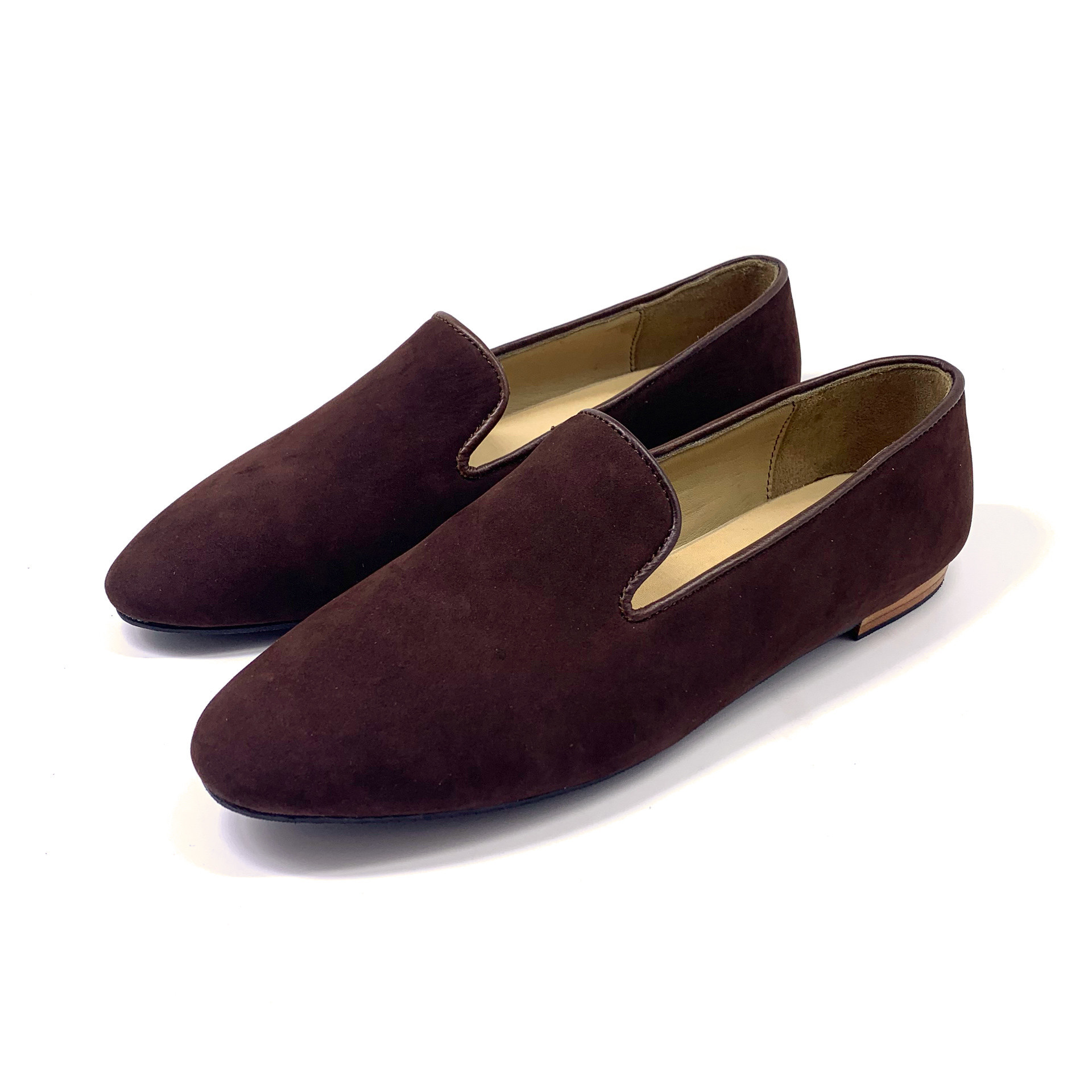Elgant loafers designed for, and made by women. Handmade with real authentic leather in Brown Nubuck and featuring a full rubber sole for maximum comfort and protection from slippery walks. All our shoes are in stock and can be costumized if required. All of our shoes are made in-house and we have full control over the frabrication process.