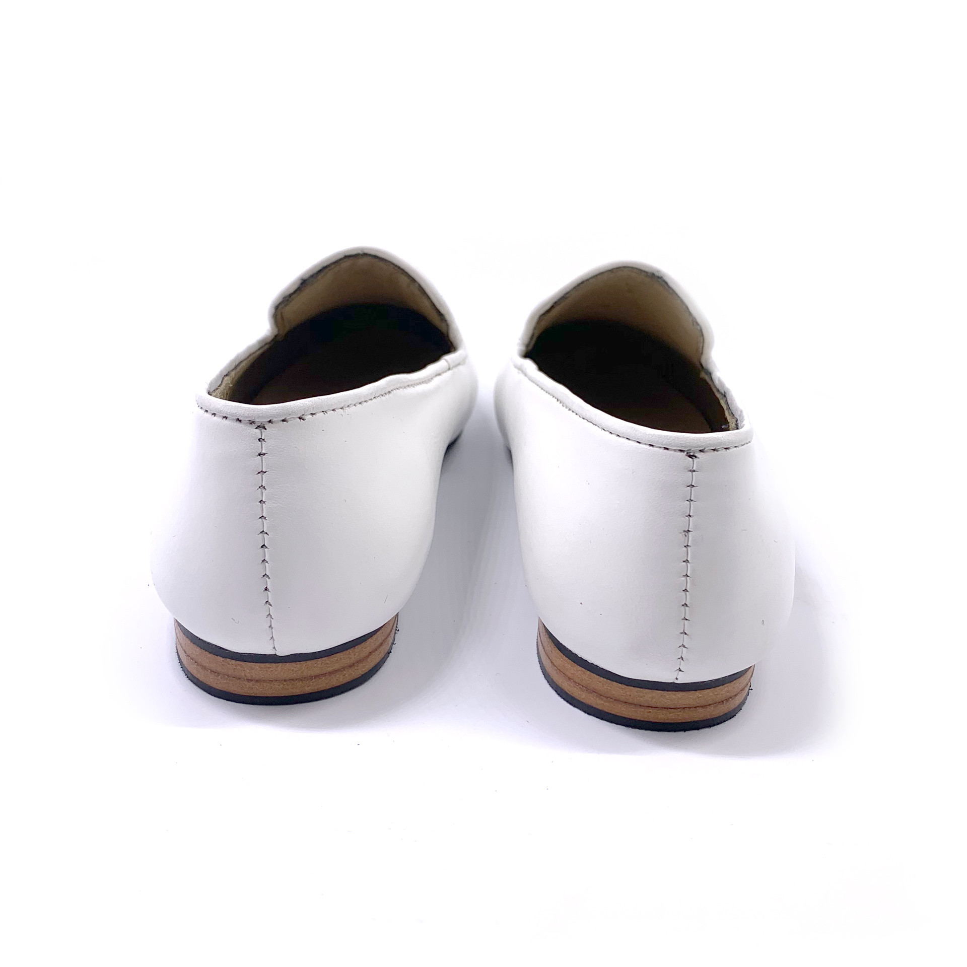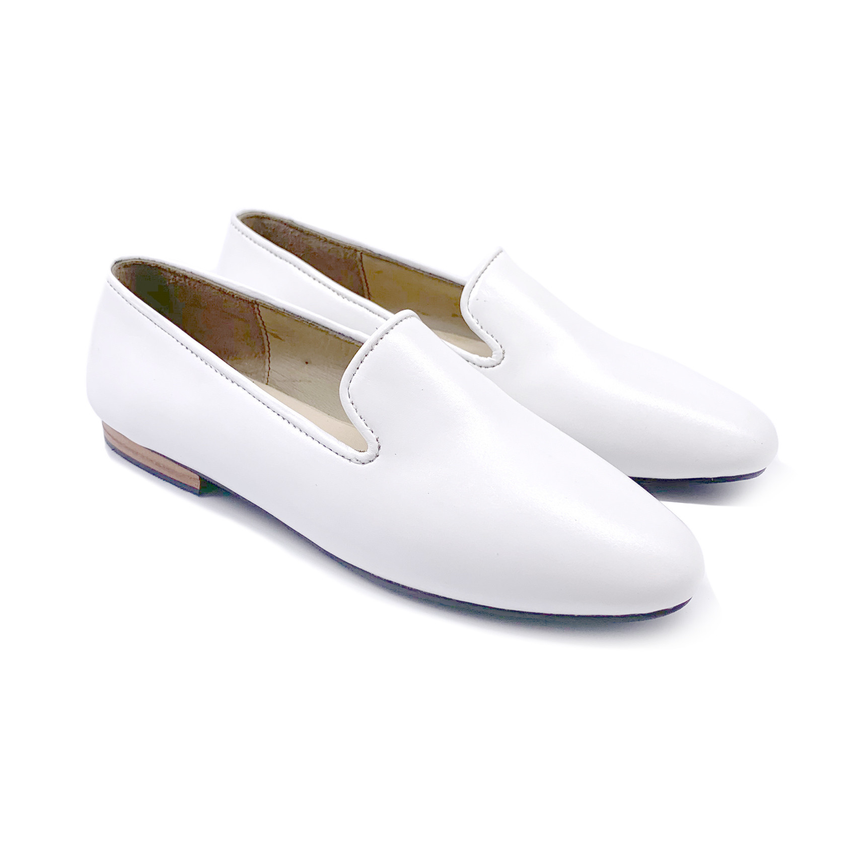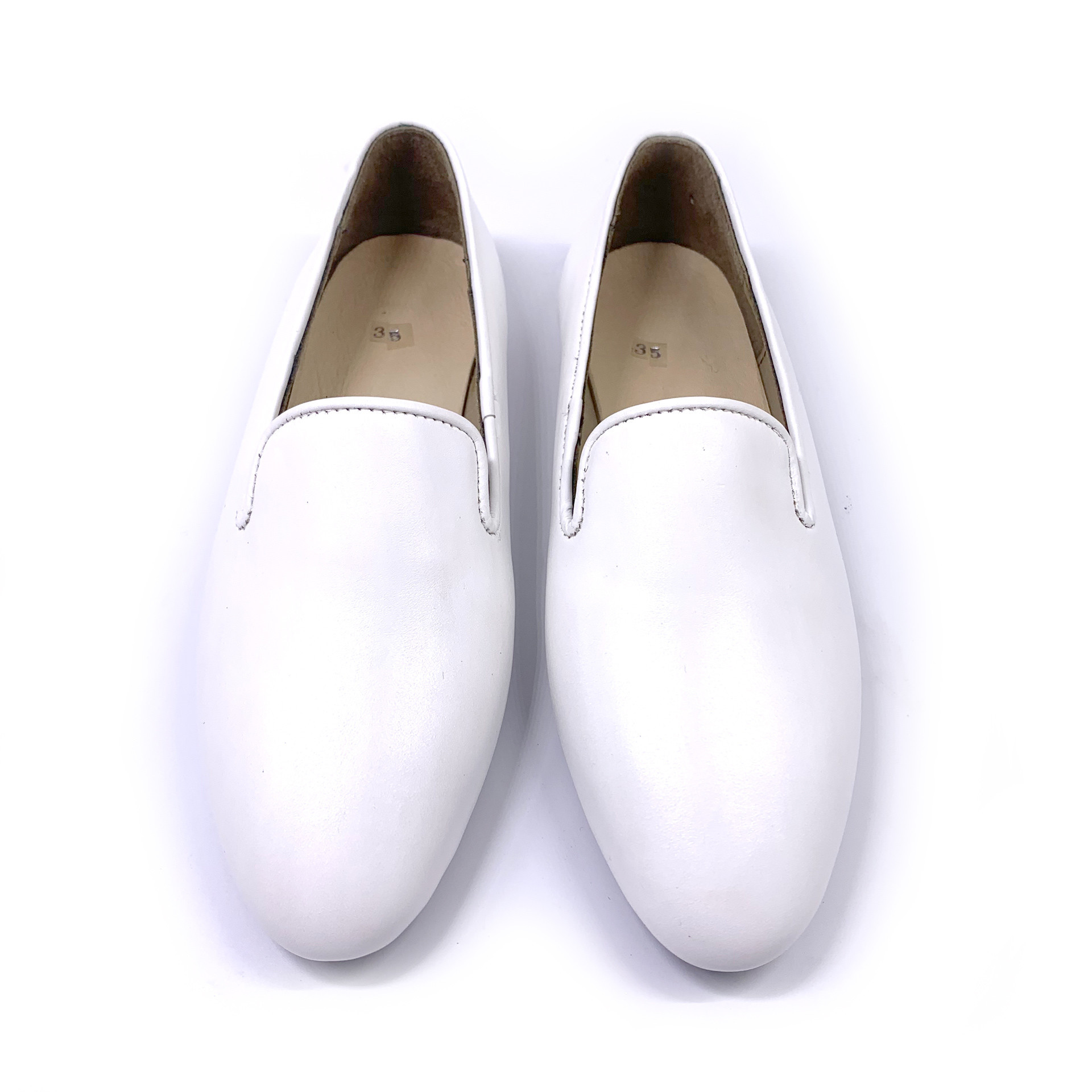 Elgant loafers designed for, and made by women. Handmade with real authentic leather in White Nappa and featuring a full rubber sole for maximum comfort and protection from slippery walks. All our shoes are in stock and can be costumized if required. All of our shoes are made in-house and we have full control over the frabrication process.